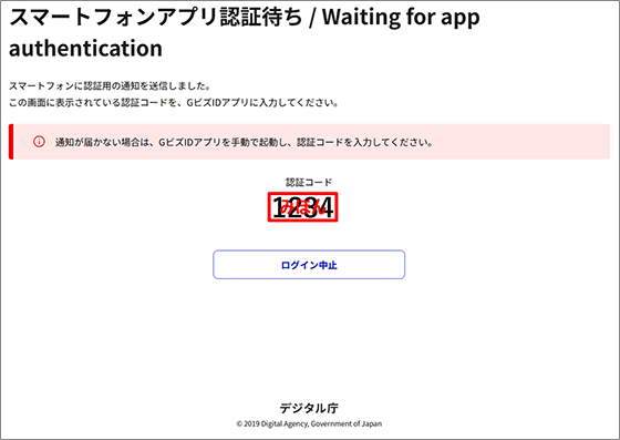 ※通知が届かない場合、手動でGビズIDアプリを起動してください