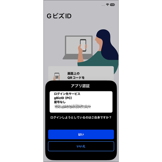 - ②GビズIDアプリ内の確認メッセージ欄にある「はい」をタップする
